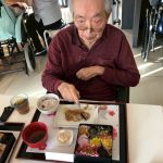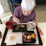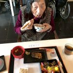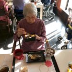 新年あけましておめでとうございます。旧年中はご入居者ご家族様並びに関係各位の皆様、地域の皆様には大変お世話になりましてありがとうございました。本年も変わらぬご支援を賜りますようよろしくお願い致します。本日は入居者様に心ばかりではありますがおせち料理をご提供させて頂きました。皆様、元気に召し上がって頂きました。